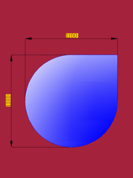| Rozměr - sklo pod kamna | sklo pod pod krbová kamna kapka velká 1100x1100mm, tloušťka 6mm, kalené |
